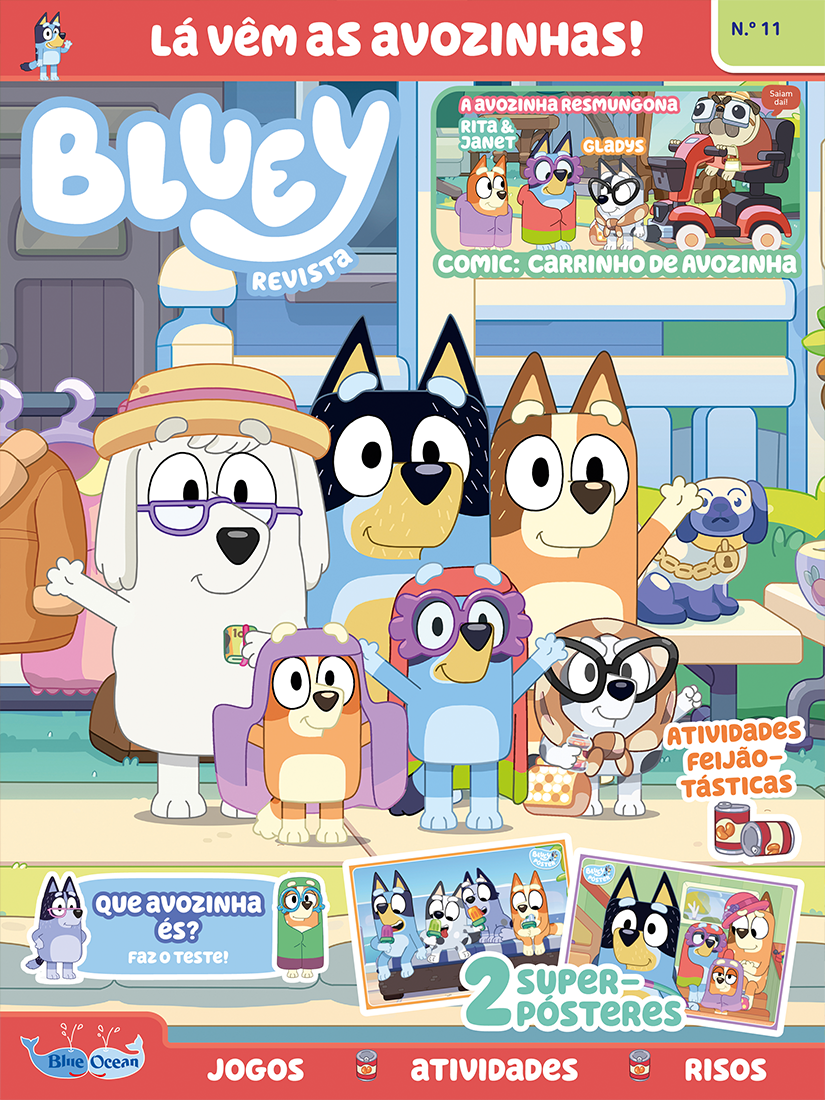 Depois do sucesso da série, a Bluey e a sua família têm agora uma revista! Nela, uma cachorrinha muito enérgica, imaginativa e curiosa chamada Bluey vive grandes histórias e aventuras em mundos imaginários, juntamente com a sua irmã, a Bingo, e outras personagens divertidas.