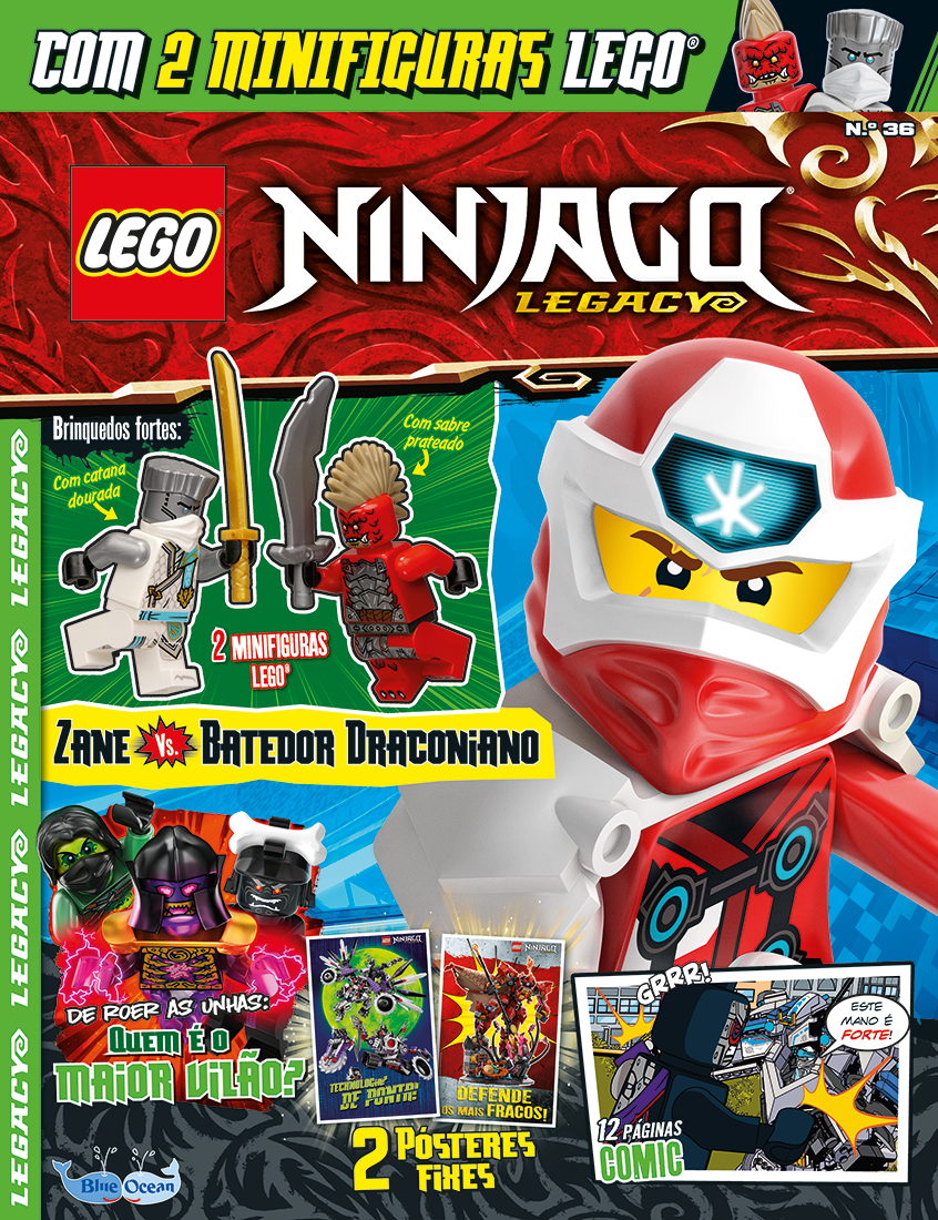 Além disso, na revista vais descobrir comics repletos de ação, desafios e jogos emocionantes e perfis dos heróis e vilões mais famosos das duas primeiras temporadas! Tudo o que é essencial para os clássicos fãs e novos seguidores LEGO® NINJAGO®. E como se não bastasse, tens sempre duas minifiguras originais LEGO® NINJAGO® à tua espera!